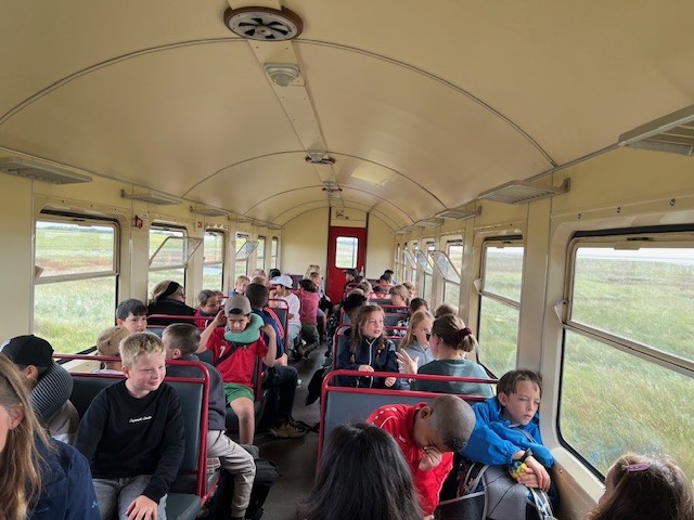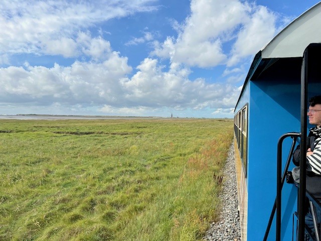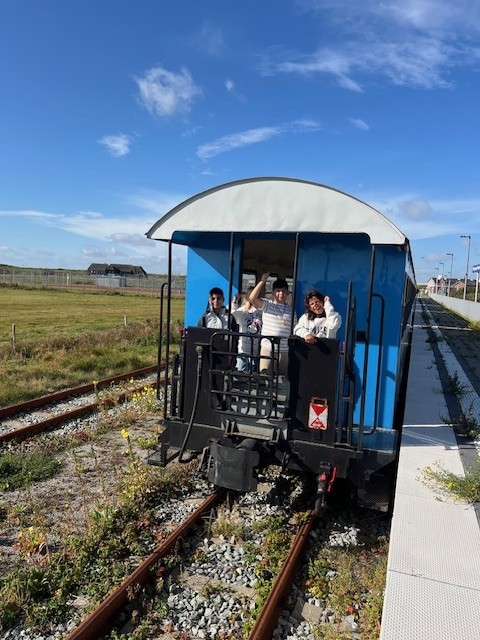 Am Freitagmorgen klingelten die Wecker trotzdem besonders früh, da bereits vor dem Frühstück die Koffer zur Abholung verladen sein mussten. Danach wurden die Zimmer geräumt, ausgefegt und ordentlich hinterlassen. Bis zur Abfahrt der Inselbahn im Westen der Insel um 11.30 Uhr gab es dann nochmal Freizeit an der Unterkunft bzw. einen Abschiedsspaziergang am Deich. Die anschließende Fahrt mit der Inselbahn genossen alle Beteiligten sehr, da es zum einen eine weitere Wanderung sparte und einige überhaupt erst zum ersten Mal mit einer Eisenbahn fuhren. Die anschließende Überfahrt mit der Fähre nach Harlesiel verlief reibungslos, sodass die Busse nach Verstauen des Gepäcks überpünktlich Richtung Herford aufbrachen. Um 18.00 Uhr waren alle Kinder und Begleiter dann wieder in Herford und wurden fröhlich von ihren Familien empfangen.